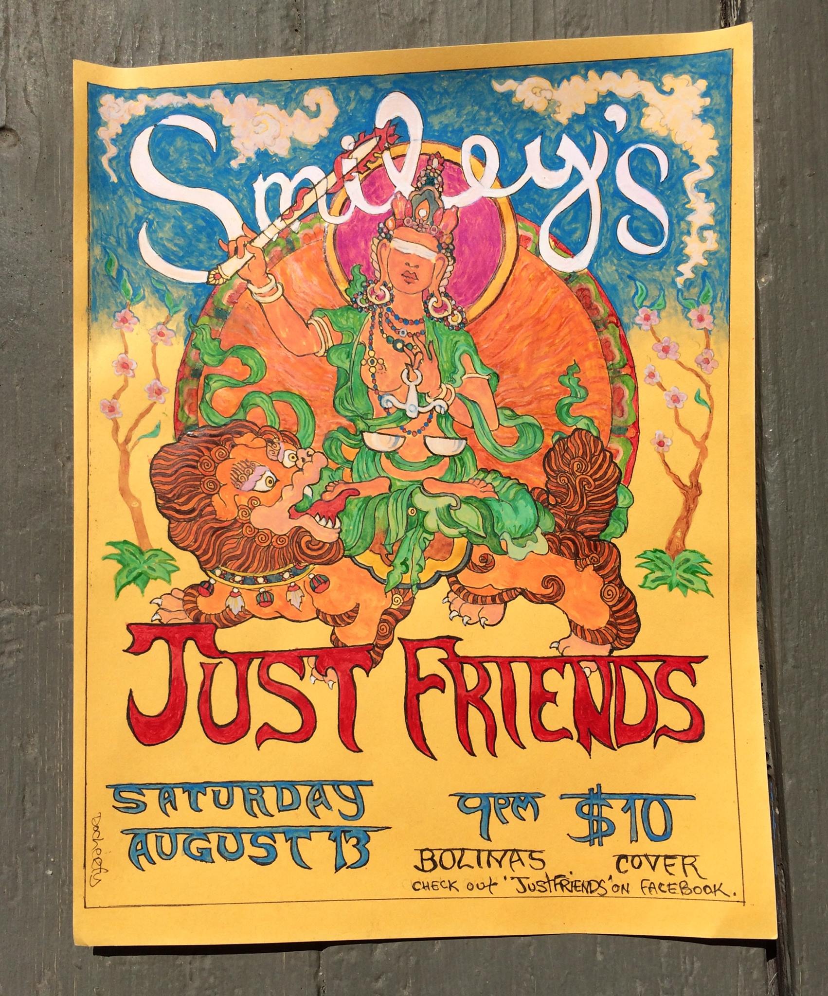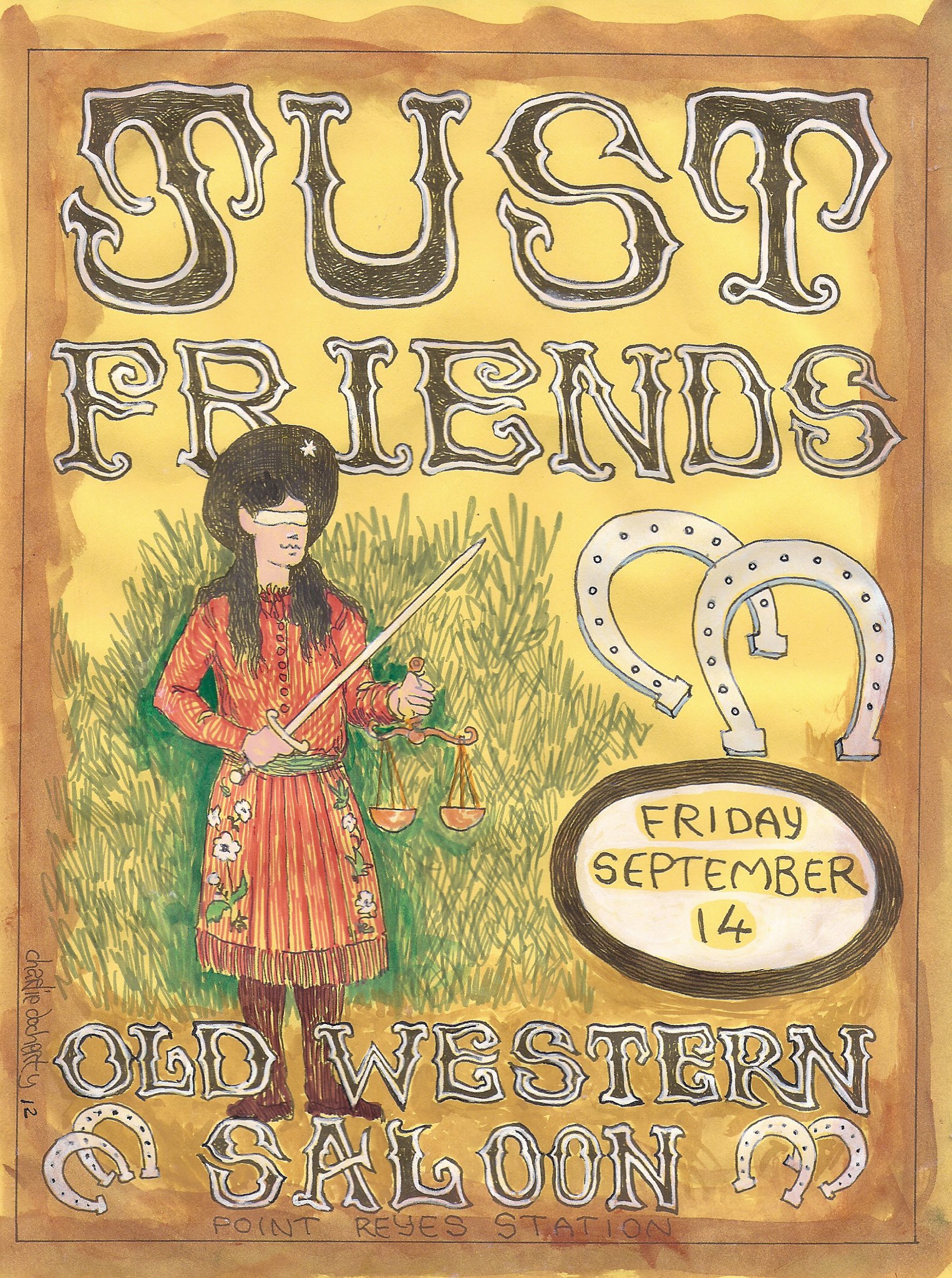 We are still mourning the loss of our beloved Charlie. One of his favorite things in life was playing music for the people of Bolinas. He was also very proud of the hand painted Just Friends posters he made over the years. Please take a stroll down memory lane and share your photos or videos. Gone but always with us.